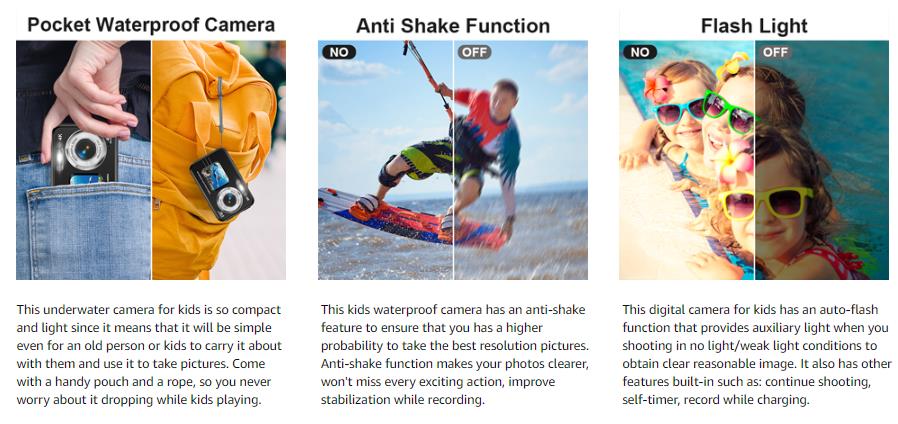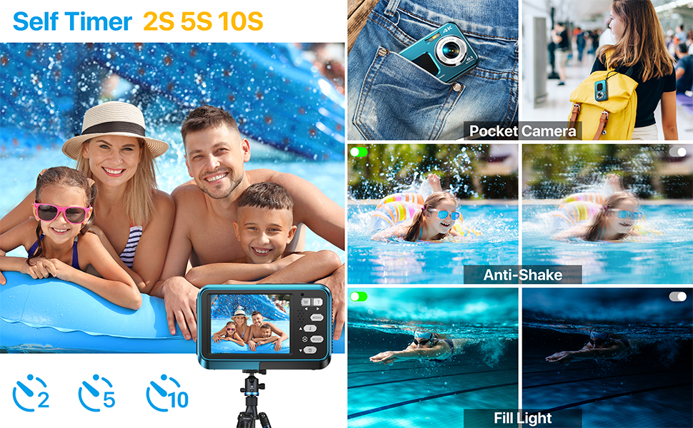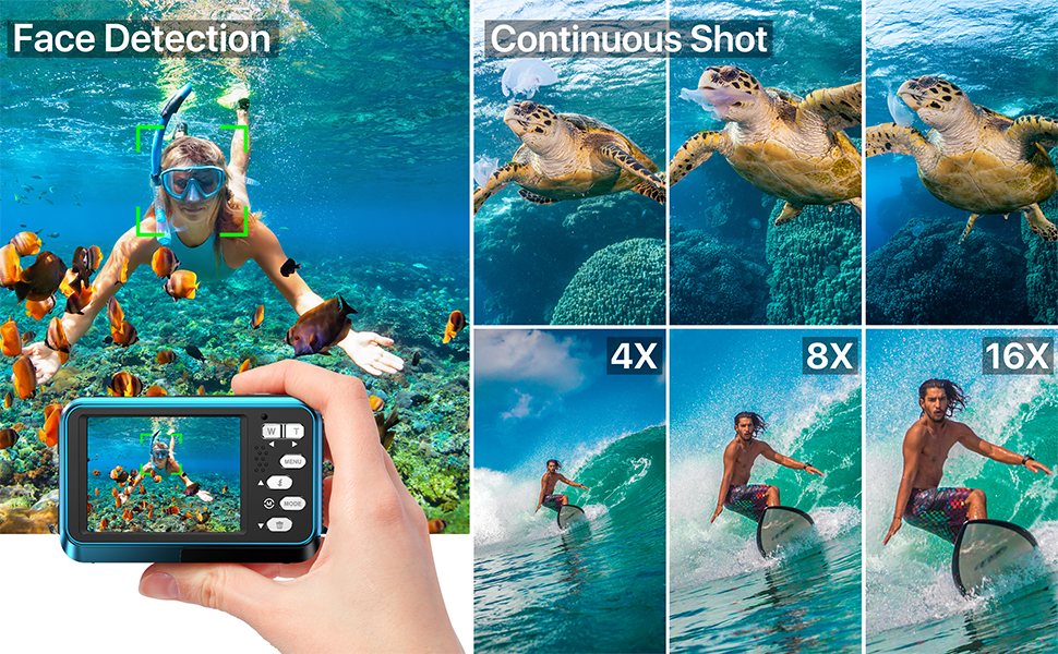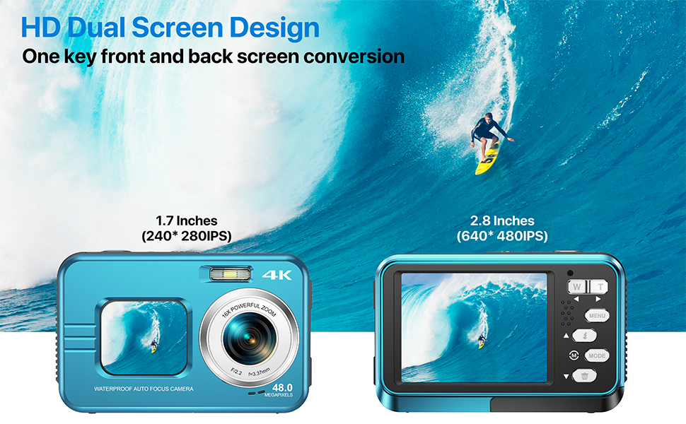 Immerse yourself in the captivating world beneath the waves with our Waterproof 4K Selfie Underwater Digital Camera. Designed for adventurers and water enthusiasts, this compact and portable camera is your ultimate companion for underwater exploration. Boasting a powerful 48MP sensor and 4K video resolution, it ensures you capture every moment with breathtaking clarity and detail. The autofocus feature and 16X digital zoom allow you to effortlessly focus on your subjects, whether it's vibrant coral reefs or playful marine life. With an IP68 waterproof rating, this camera can dive up to 11FT (3.3M), making it perfect for snorkeling, water parks, or any underwater adventure. The innovative dual-screen design, featuring a 1.7" front display and a 2.8" rear display, ensures you never miss a shot. The front screen allows you to effortlessly capture selfies and group shots, while the built-in 2s, 5s, and 10s self-timer adds versatility to your photography. Additionally, the anti-shake function ensures stable and smooth images, even in challenging underwater conditions. Compact and lightweight, this underwater camera is designed for portability, with a drawstring pouch and a hand loop string for easy carrying and storage. Never worry about losing your precious camera at sea. Embrace the beauty of the underwater world and capture unforgettable memories with our Waterproof 4K Selfie Underwater Digital Camera.